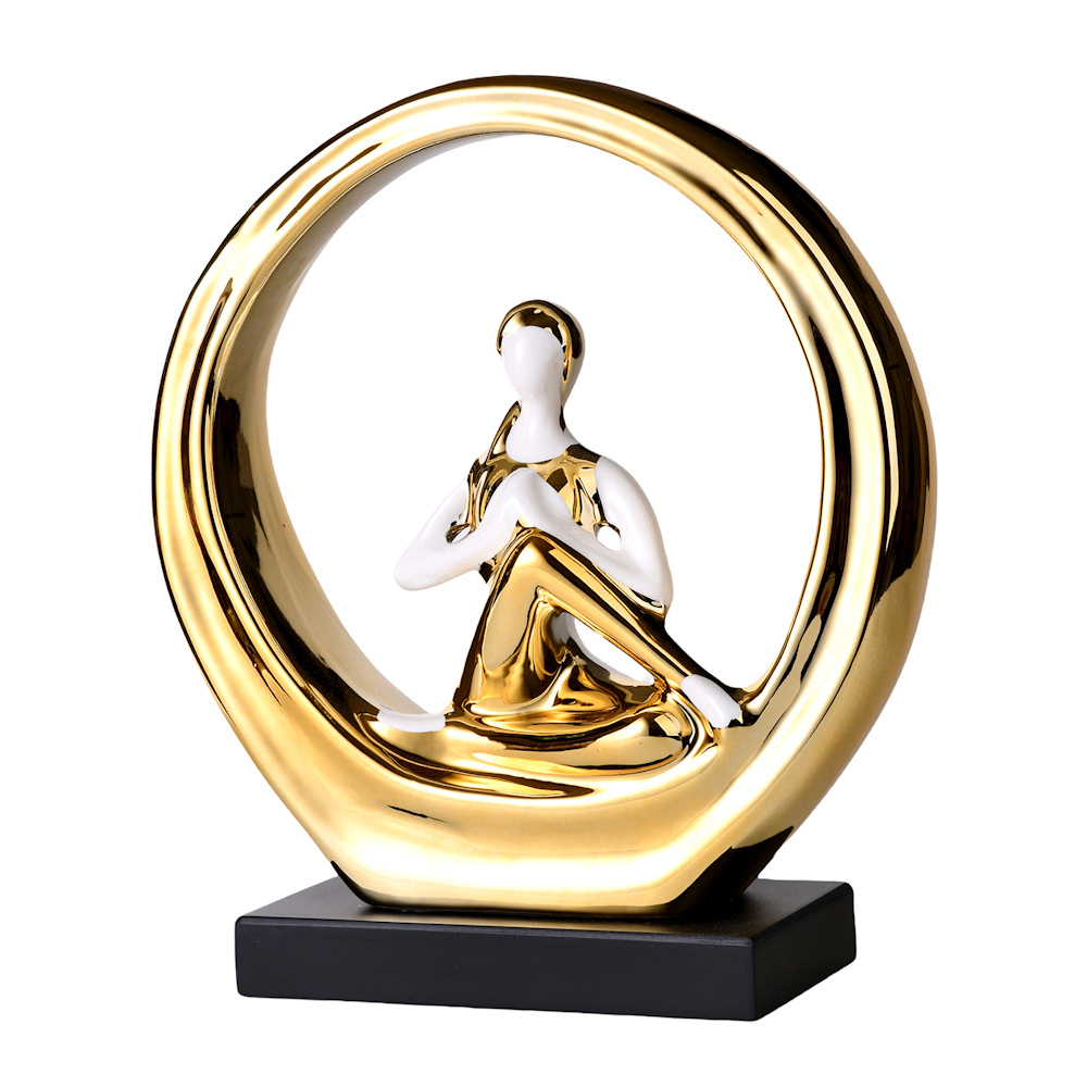 Decopatent Decopatent - Yoga Beeld Vrouw - Sculptuur Yoga dame - Woman Woondecoratie - Yoga meditatie houding - Rond Decoratie beeld - Afm. 24.5x8.8.x27 Cm - Kleur: Goud