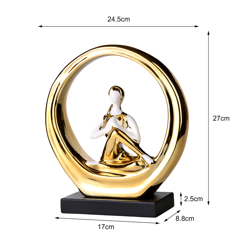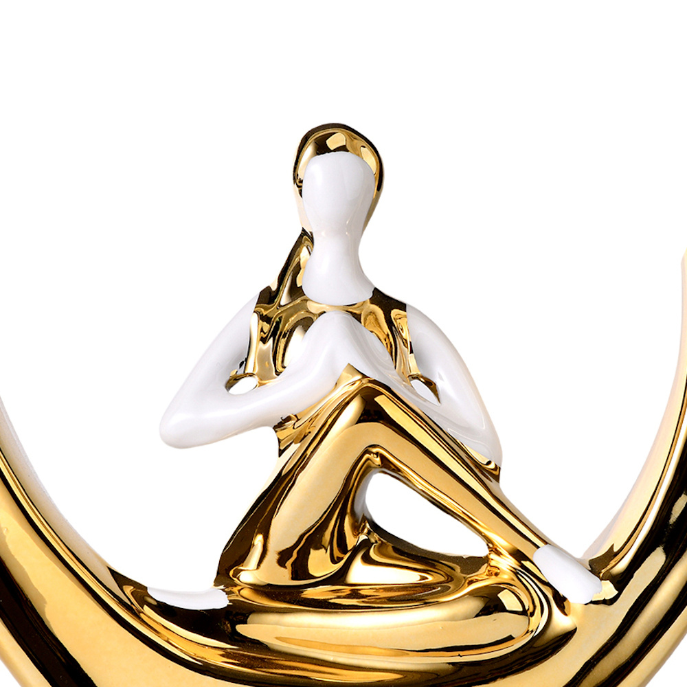 De sculptuur is gemaakt van hoogwaardig polyresin, wat zorgt voor een duurzame kwaliteit én een verfijnde afwerking. Dankzij het unieke ontwerp met ronde omlijsting, past dit beeld perfect bij zowel moderne als oosterse interieurstijlen. Het is ook een origineel cadeau-idee voor liefhebbers van yoga, mindfulness of spirituele decoratie.