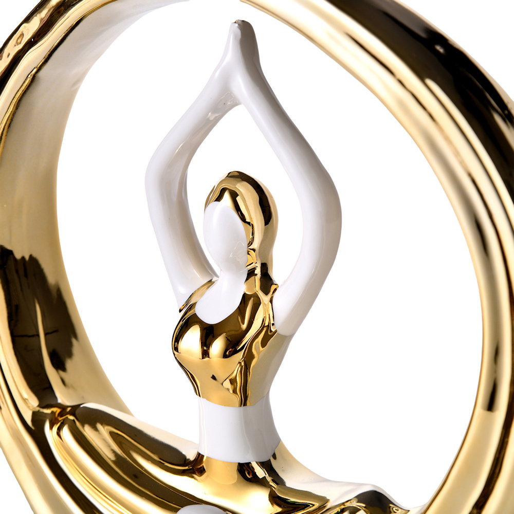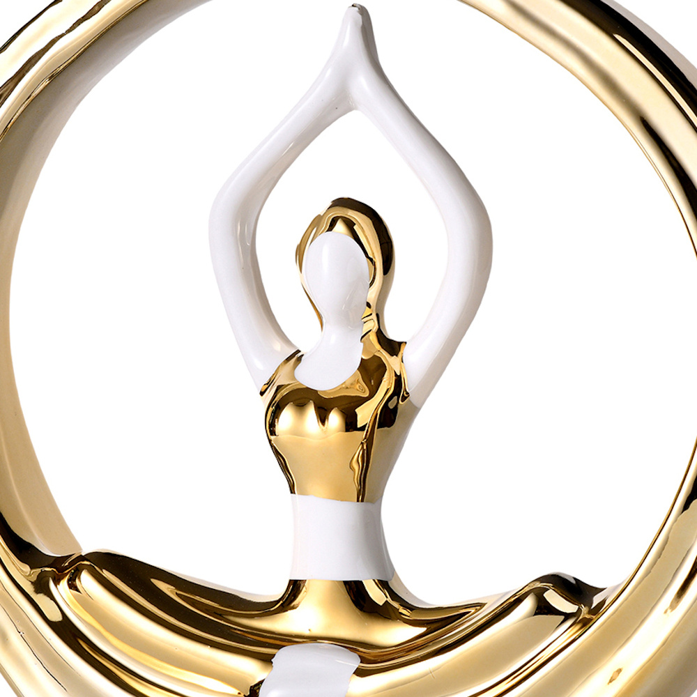 De sculptuur is gemaakt van hoogwaardig polyresin, wat zorgt voor een duurzame kwaliteit én een verfijnde afwerking. Dankzij het unieke ontwerp met ronde omlijsting, past dit beeld perfect bij zowel moderne als oosterse interieurstijlen. Het is ook een origineel cadeau-idee voor liefhebbers van yoga, mindfulness of spirituele decoratie.