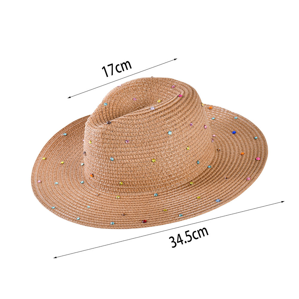 Decopatent Decopatent - Zonnehoed Dames - Festival Hoed met Glitters - Zomerhoed - Strohoed UV - Strandhoed Hoofddeksel met Brede rand - Hoed voor Volwassenen - Kleur: Naturel