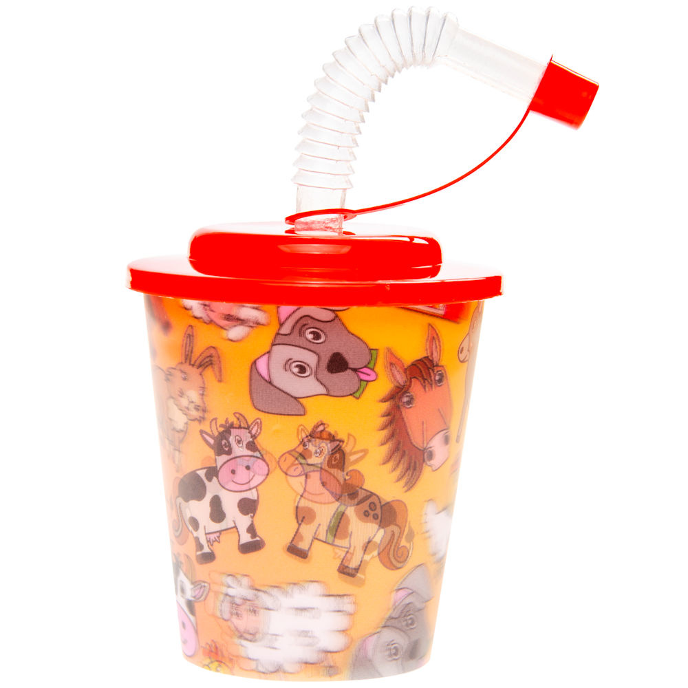 3D Boerderij Dieren Drink Bekers met Rietje en Deksel:
