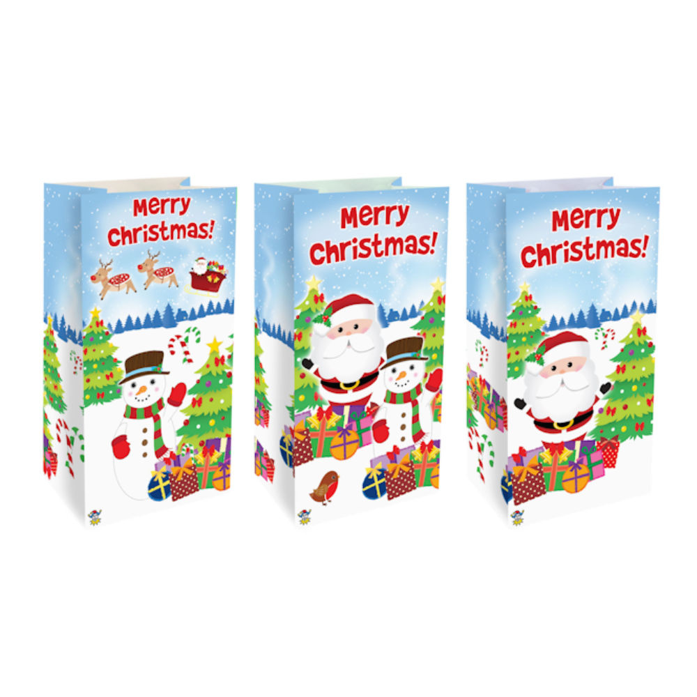 Henbrandt Decopatent® 12 STUKS Traktatie Uitdeel papieren zakjes - Inclusief Stickers - KERST - Merry Christmas - Tasjes - Traktatiezakjes voor uitdeelcadeautjes - Kinderfeestje - 13x8x25 Cm