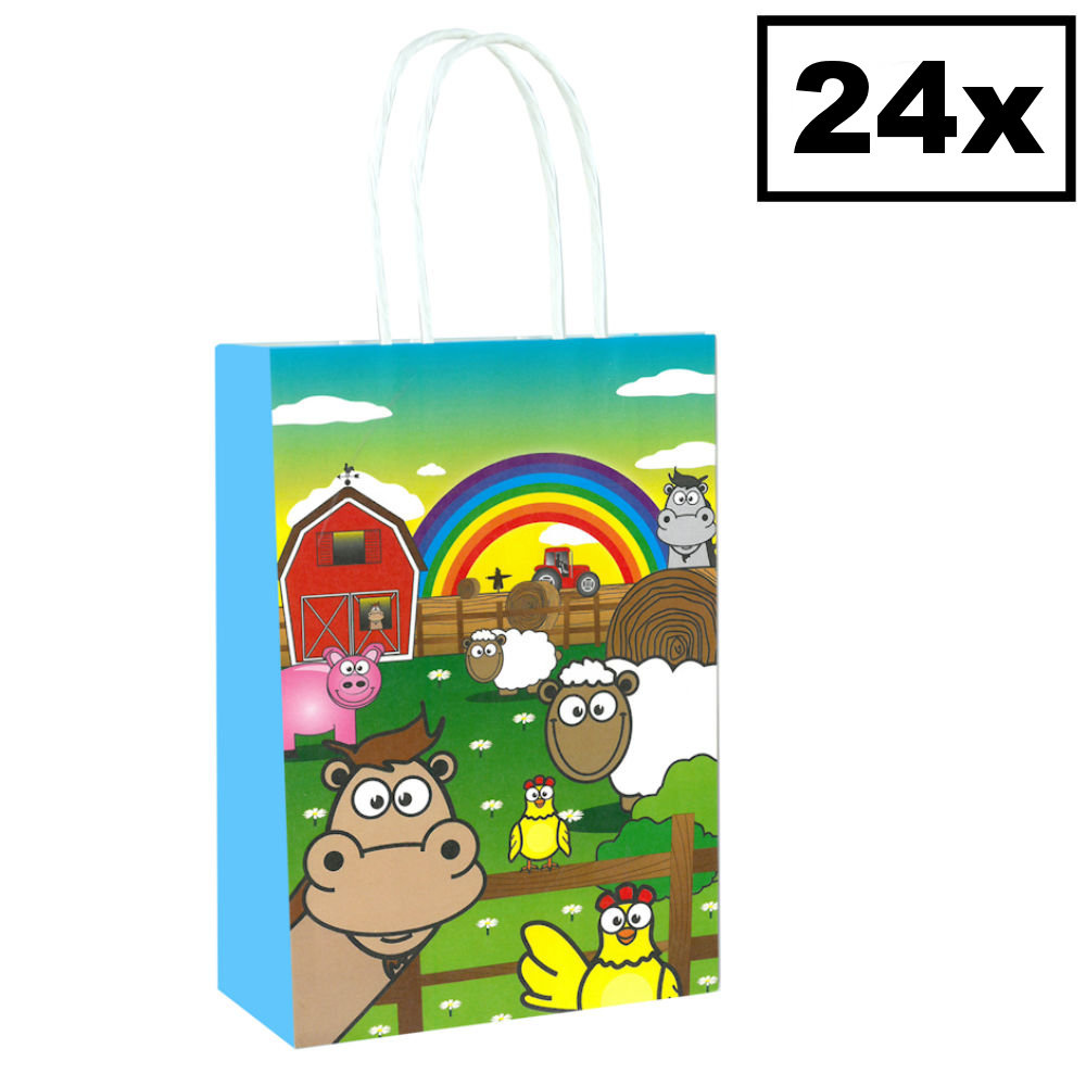✅ 24 STUKS Boerderij Dieren / Farm Traktatie Uitdeel papieren zakjes met handvat. Ideaal om jouw verjaardags traktatie in te verpakken.