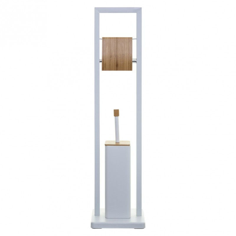 Decopatent Decopatent® 2in1 Toiletrolhouder staand & Toiletborstel met houder- Staande Wc Rolhouder - Toilet rolhouder - Bamboe Metaal - Wit