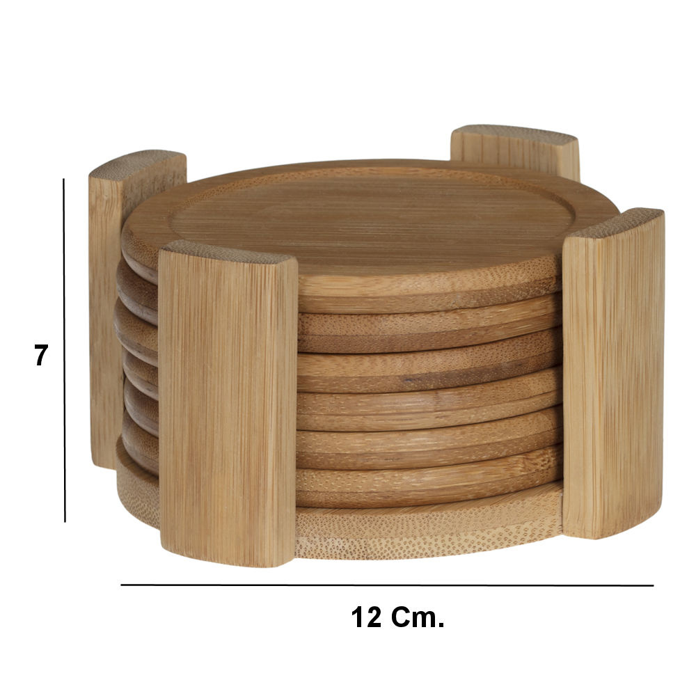 ✅ 6 Stuks Bamboe houten Ronde Onderzetters Inclusief Onderzetter Houder. Prachtige set Onderzetters Voor Glazen, theeglazen en koffie mokken.