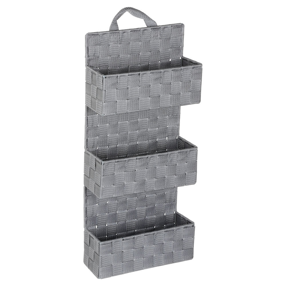 Decopatent Decopatent® Badkamerrek - Gevlochten badkamerplank - 3 Laags Badkamermand - Om op te hangen aan de muur - 25x9x57 Cm - Licht Grijs