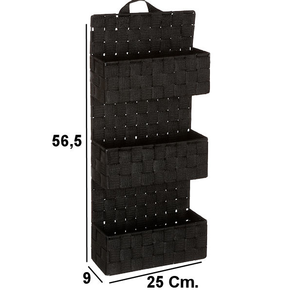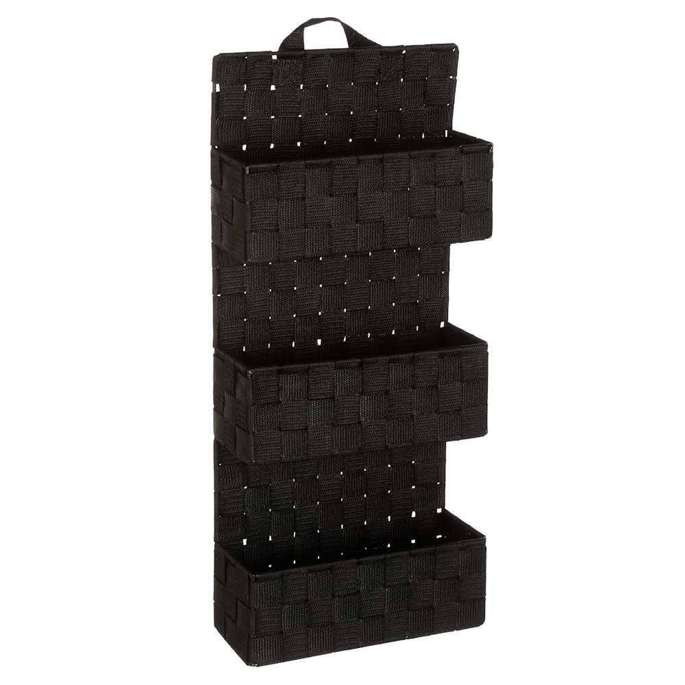 Decopatent Decopatent® Badkamerrek - Gevlochten badkamerplank - 3 Laags Badkamermand - Om op te hangen aan de muur - 25x9x57 Cm - Zwart