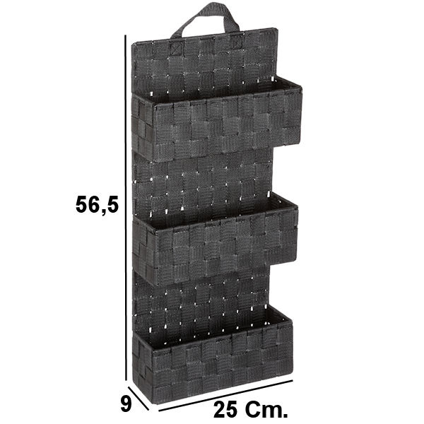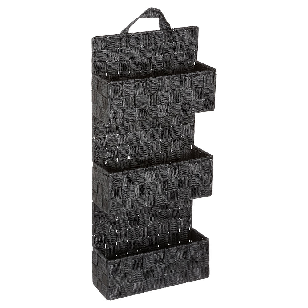 Decopatent Decopatent® Badkamerrek - Gevlochten badkamerplank - 3 Laags Badkamermand - Om op te hangen aan de muur - 25x9x57 Cm - Donkergrijs