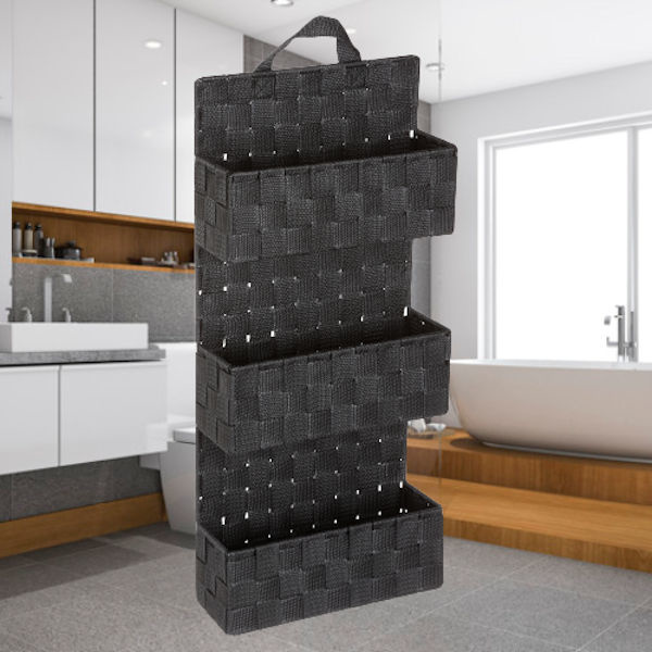 Dit mooie hangende badkamerrek met 3 legplanken (Manden) is gemaakt van hoogwaardig polypropyleen. Hij is compact maar biedt je wel veel extra opbergruimte in de badkamer. Met zijn prachtige look past hij in elke badkamer en door zijn formaat past hij ook heel goed in kleine badkamers.