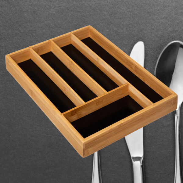 ✅ Bamboe Bestekbak 5 Vaks met Zwarte Inleg ✅ Besteklade Organizer met 5 vakken ✅ Bestek Opbergen Opbergbak ✅ Super handige bamboe bestekbak met 5 vakken. ✅ Ideaal om je keukenlade te organiseren!