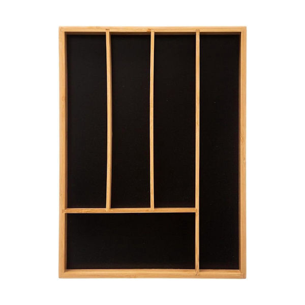 Decopatent Decopatent® Bamboe Bestekbak 5 Vaks - Besteklade Organizer Zwarte Inleg - Bestek Opbergen - Bestekcassette - Hour - 25x34x4.3 Cm