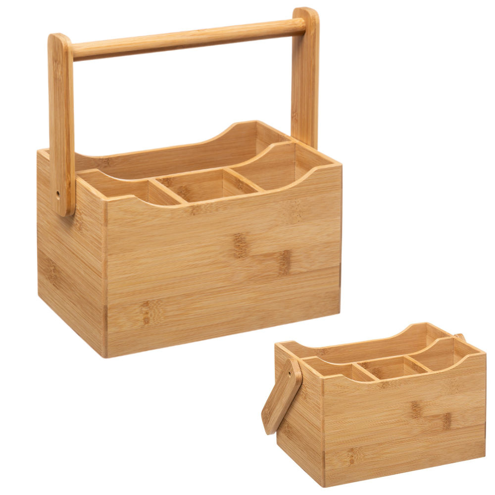 ✅ Trendy bamboe Bestek Organizer met 4 handige opbergvakjes. ✅ Bestek Organizer met handgreep. ✅ Ideaal voor het opbergen van bestek, houten keuken lepels etc. Onmisbaar in elke keuken.