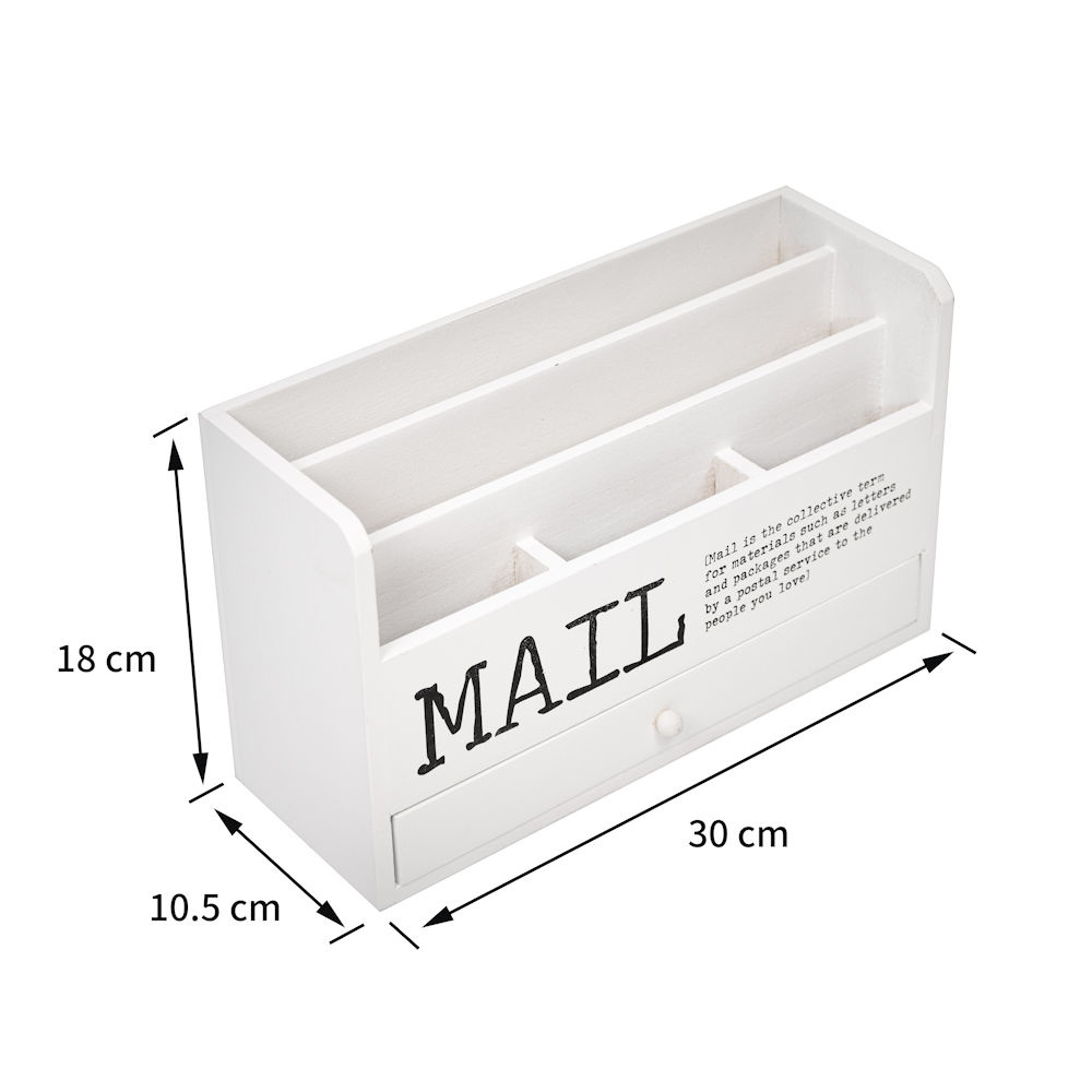 Decopatent Decopatent® Brievenbak Hout met 5 vakken & 1 Lade - Bureau organizer - Pennebak - Postbakje voor brieven telefoon etc - Wit