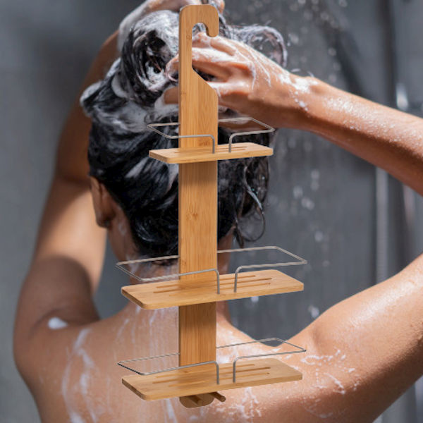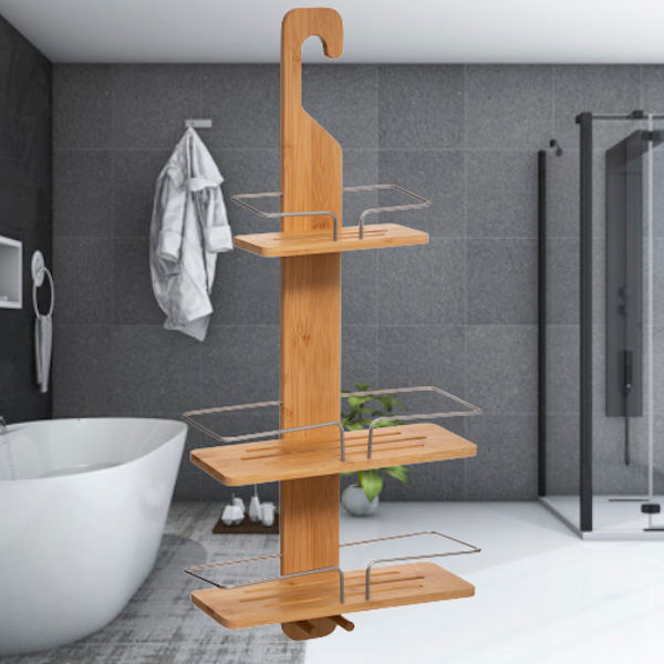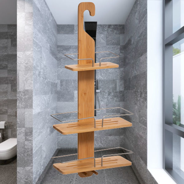 ✅ 3 Laags Bamboe houten hangende Douchrek met 3 legbakjes. Het douche rek heeft een mooi strak design en is gemaakt van bamboe hout en roestvrij aluminium. Daarnaast biedt dit doucherek u voldoende ruimte voor al uw doucheproducten en douche accessoires, zoals shampoo, douchegel, conditioner, badsponsen etc.