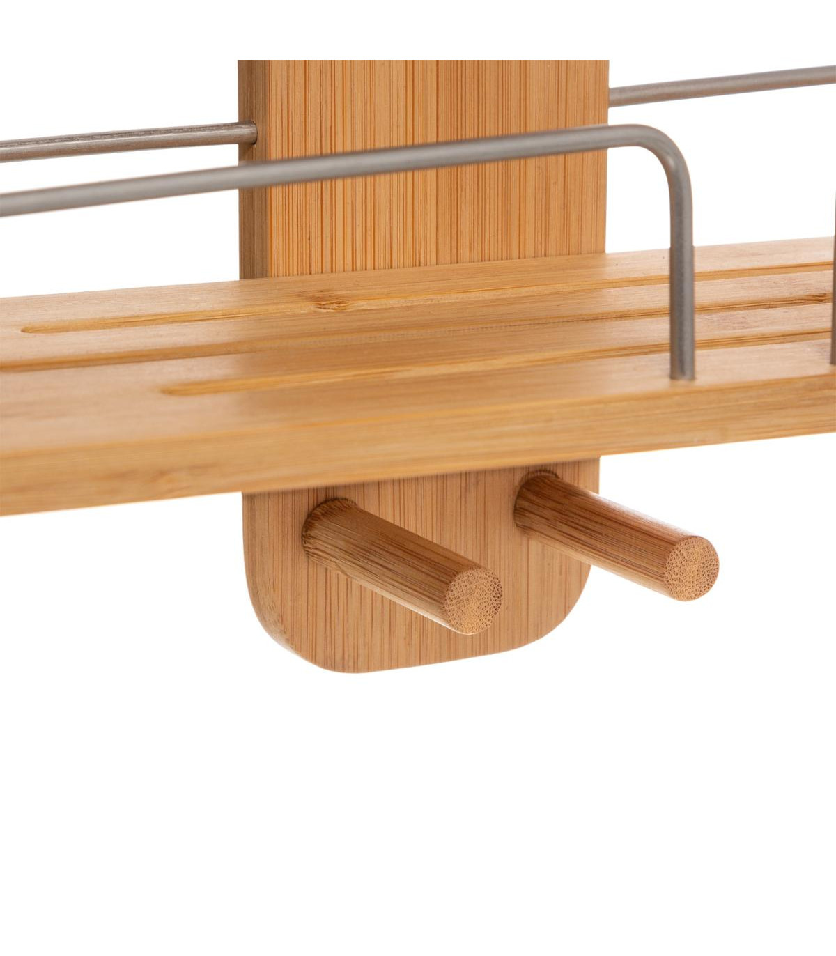 Dit 3 laags doucherek is gemaakt van stevig en roestvrij aluminium en bamboe hout. Dit voorkomt lelijke roestplekken en zorgt voor een erg lange levensduur van het 3 laags doucherek. Dit hangend doucherek is voorzien van een 3 opbergvakken.