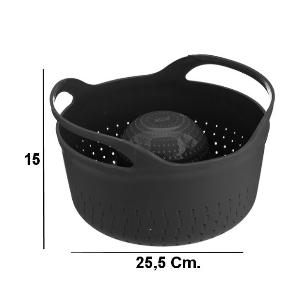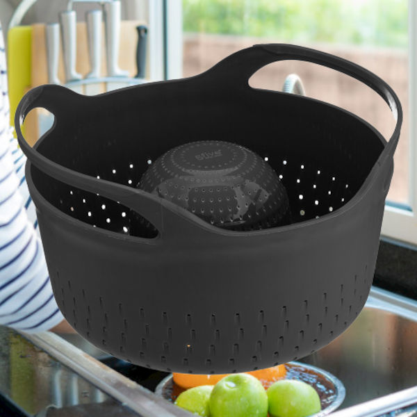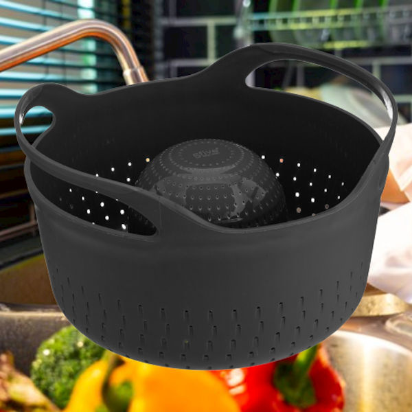 ✅ 2 in 1 Dubbel Kunststof Vergiet ✅ Keuken Vergiet Zeef aan 2 kanten te gebruiken, 2 Zeef Diktes ✅ Vergiet met 2 handvaten ✅ Voor het wassen / afspoelen van Groenten en Fruit ✅ Of voor het afgieten van pasta's ✅ Kleur: Zwart