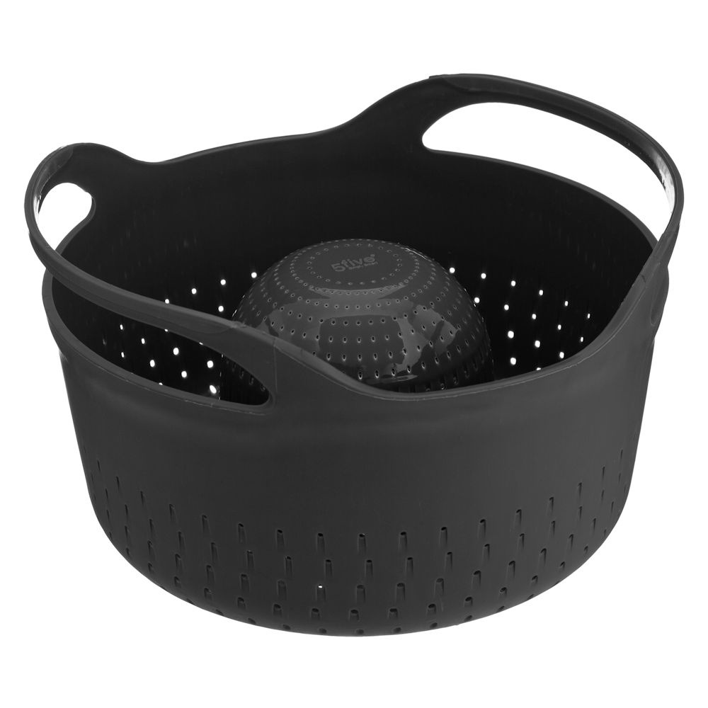 Decopatent Decopatent® Dubbel Kunststof Vergiet - Aan 2 kanten zeven - 2 Zeef Diktes - Keuken Zeef - Rond - Vergiet met 2 Handvaten - Zwart