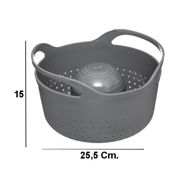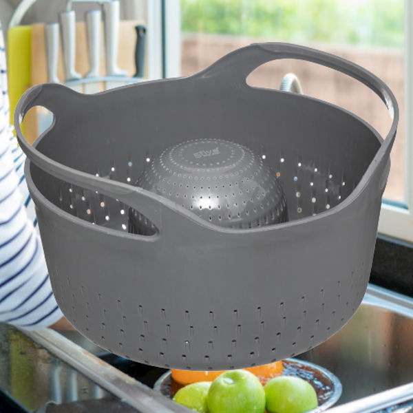 ✅ 2 in 1 Dubbel Kunststof Vergiet ✅ Keuken Vergiet Zeef aan 2 kanten te gebruiken, 2 Zeef Diktes ✅ Vergiet met 2 handvaten ✅ Voor het wassen / afspoelen van Groenten en Fruit ✅ Of voor het afgieten van pasta's ✅ Kleur: Grijs