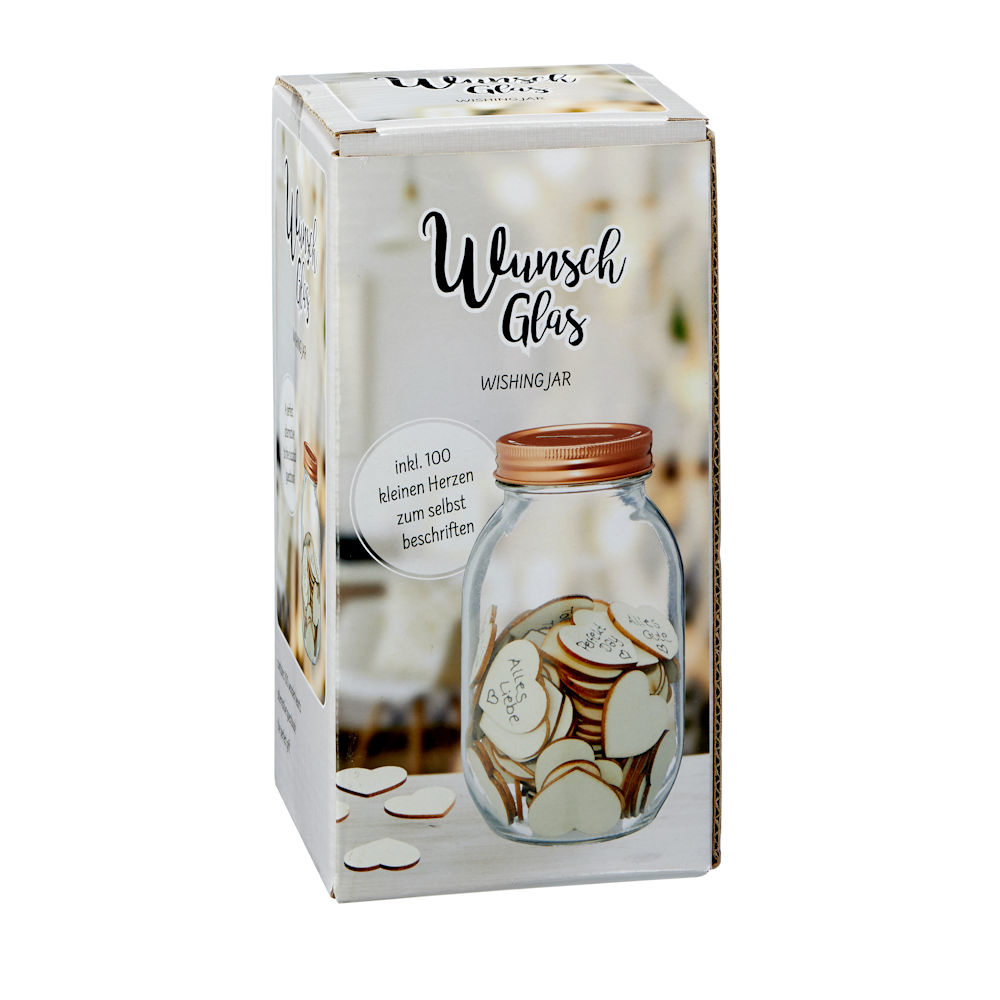 ✅ Glazen wenspot, Inclusief 100x houten harten