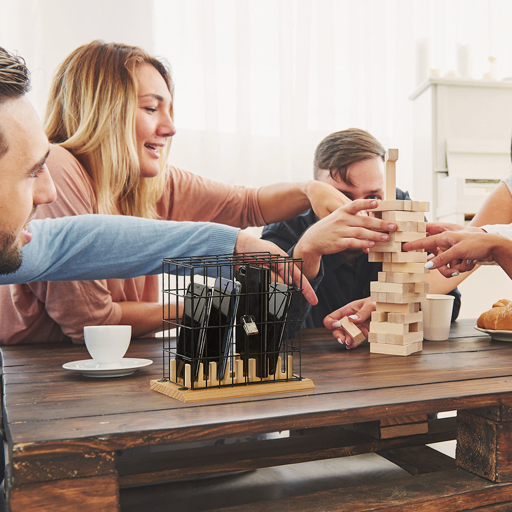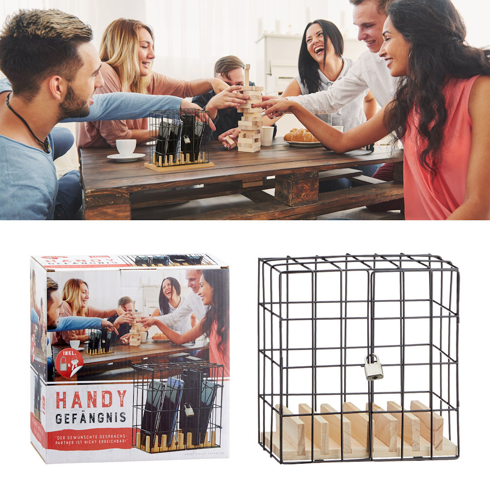 Deze speelse en zeer effectieve gevangenis is er voor bedoeld om de mobiele telefoons op een speelse manier buiten bereik van de gebruiker te houden. Voor zowel kinderen als volwassenen.