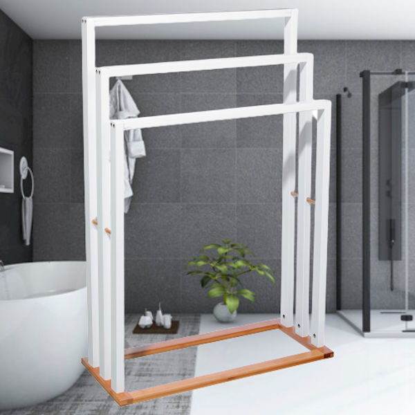 Hang je handdoeken vanaf nu op dit staande handdoekenrek. Door zijn natuurlijke uitstraling past hij in elke badkamer!