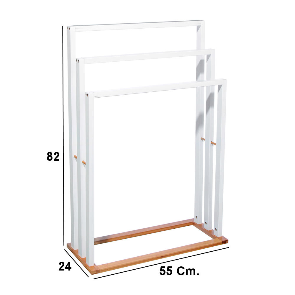 ✅ Handoelenrek ✅ Compact staand handdoekenrek van Bamboe & MDF-hout. Met zijn natuurlijke uitstraling past hij in elke badkamer. Biedt plaats aan 3 handdoeken!