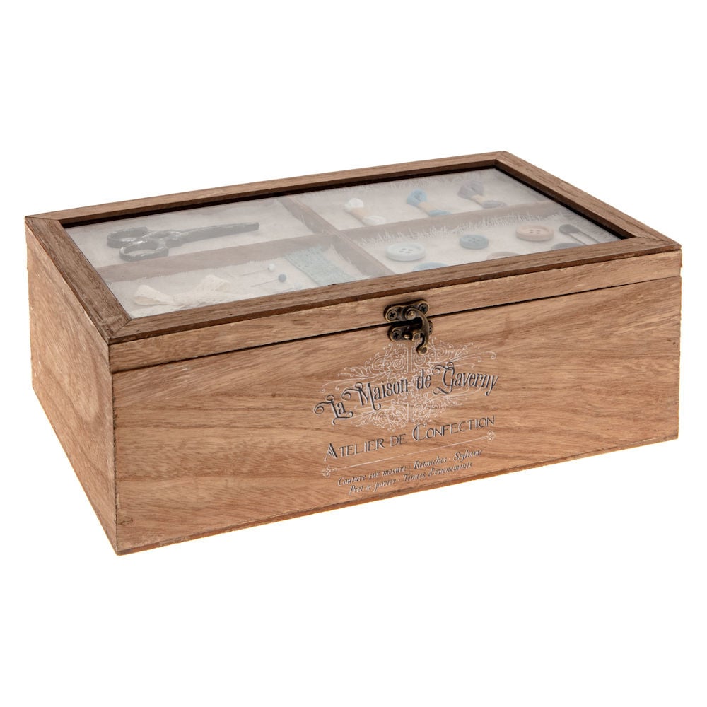 Deze naaidoos met 3 verschillende grote vakken bieden ruimte voor naalden, spoelen, garens, knopen, meetlint en al je andere naai garnituur & accessoires. Dankzij de deksel is de naai inhoud in deze naaidoos beschermd tegen vuil & stof. Ook is deze naaidoos erg geschikt voor het opbergen van andere knutselgerei, sieraden, pennen etc. Deze compacte naaidoos biedt voldoende ruimte in deze houten opbergbox. Erg handige en praktische naaidoos dus.