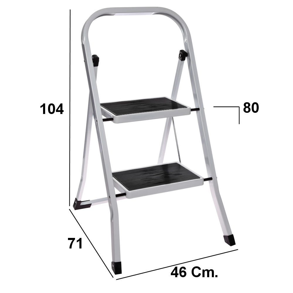 ✅ Metalen Huishoudtrap Keukentrap Met 2 Treden ✅ Inklapbaar metalen huishoudtrap ✅ Huishoudtrap / Keukentrapje opvouwbaar ✅ Huishoudtrapje Afmetingen 46 x 71 x 104 Cm ✅ Maximaal draagvermogen: 150 KG ✅ Anti-Slip ✅ Kleur: Wiut met Zwart
