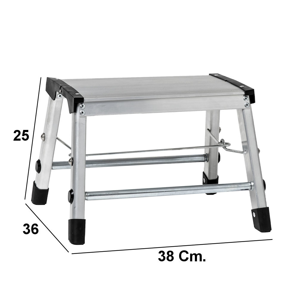 ✅ Aluminium Huishoudtrap Keukentrap Met 1 Treden ✅ Inklapbaar aluminium huishoudtrap ✅ Huishoudtrap / Keukentrapje opvouwbaar ✅ Huishoudtrapje Afmetingen 38 x 36 x 25 Cm ✅ Maximaal draagvermogen: 150 KG ✅ Anti-Slip ✅ Kleur: Aluminium met Zwart