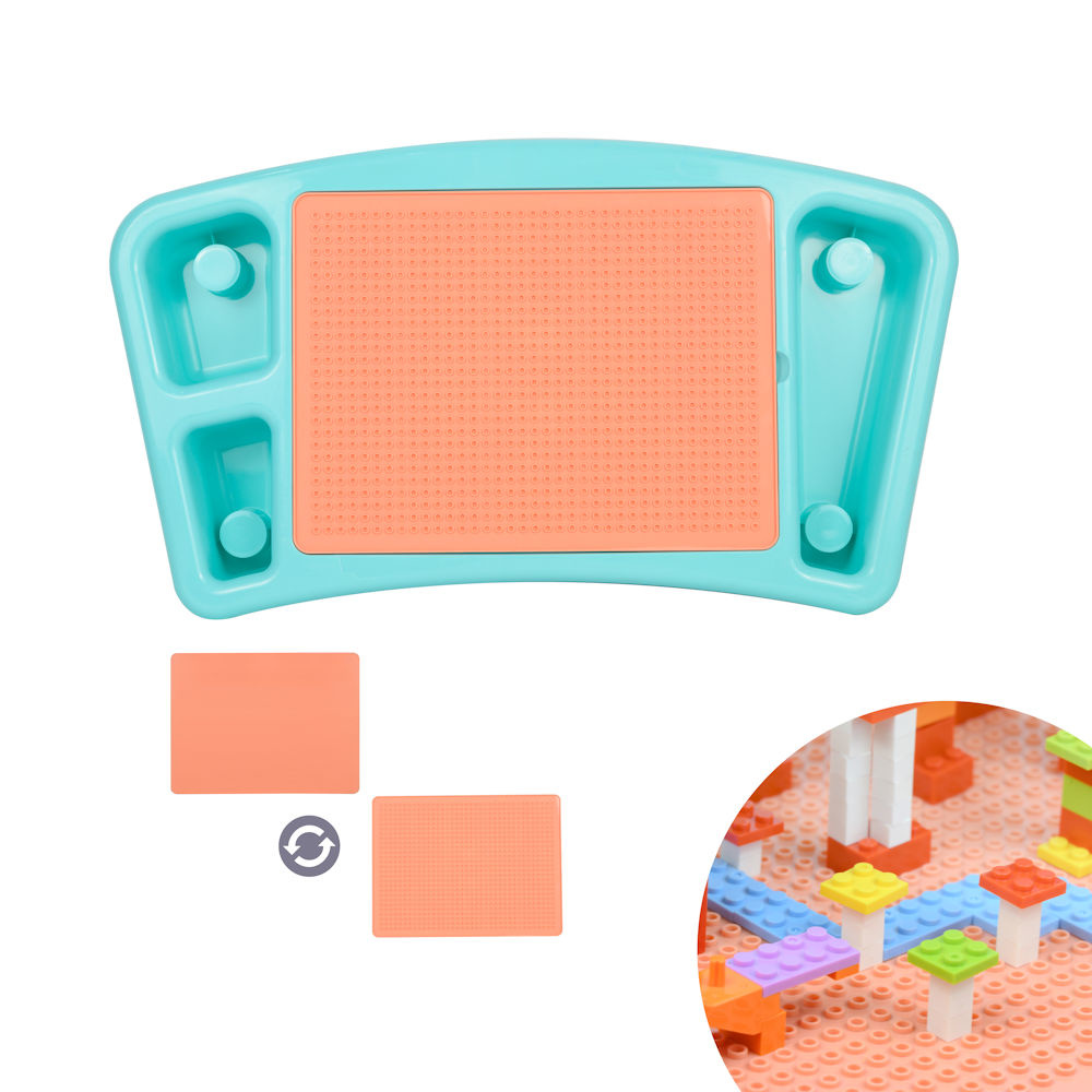 Het unieke aan deze multifunctionele kindertafel is, dat je met de bouwplaat met Lego® Bouwstenen kan bouwen. Is je kind klaar met bouwen, dan draai je de bouwplaat eenvoudig om, en creeer je binnen enkele seconden een vlak blad, zodat jouw kind deze tafel kan gebruiken om te tekenen of kleuren.