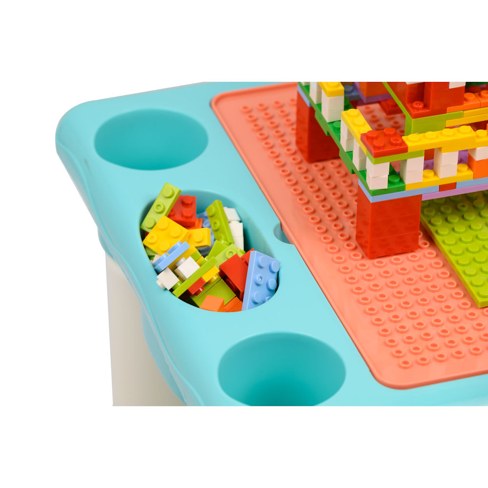 Het unieke aan deze multifunctionele kindertafel is, dat je met de bouwplaat met Lego® Bouwstenen kan bouwen. Is je kind klaar met bouwen, dan draai je de bouwplaat eenvoudig om, en creeer je binnen enkele seconden een vlak blad, zodat jouw kind deze tafel kan gebruiken om te tekenen of kleuren.