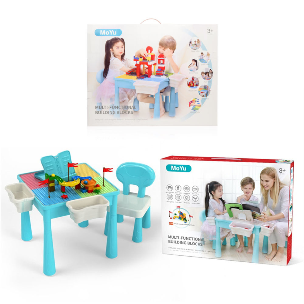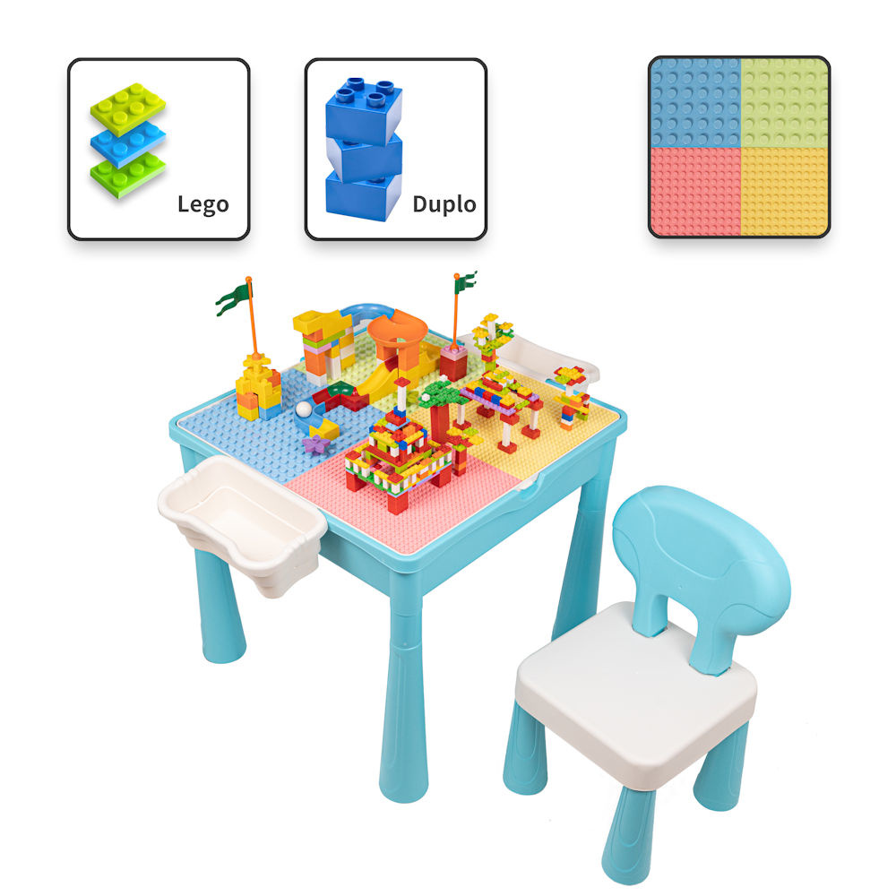 ✅ Multifunctionele Kindertafel / Speeltafel met 1 Stoel & bouwplaat (Voor Lego® & Duplo® blokken) ✅ Bouwtafel ✅ Watertafel ✅ Kindertafel met Boekenhouder