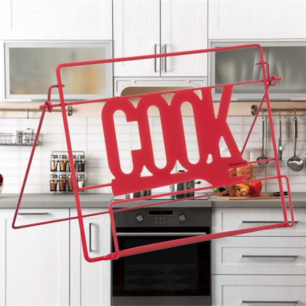 ✅ Handige metalen Kookboekstandaard / Boekenhouder. ✅ Ideaal voor je kookboek, leesboek of tablet. ✅ Neemt weinig ruimte in en is in hoogte verstelbaar en inklapbaar! ✅ Met COOK Design ✅ Kleur: Rood