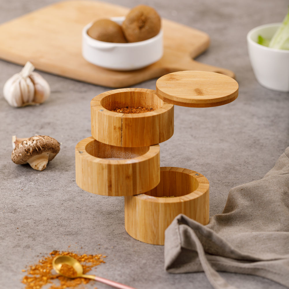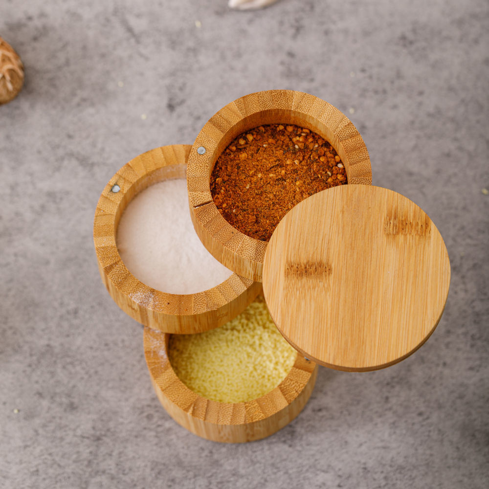 ✅ Rond Bamboe houten Kruidenpot voor 3 soorten kruiden ✅ Eenvoudig Specerijen en Peper en Zout opbergen ✅ Keuken kruiden organizer
