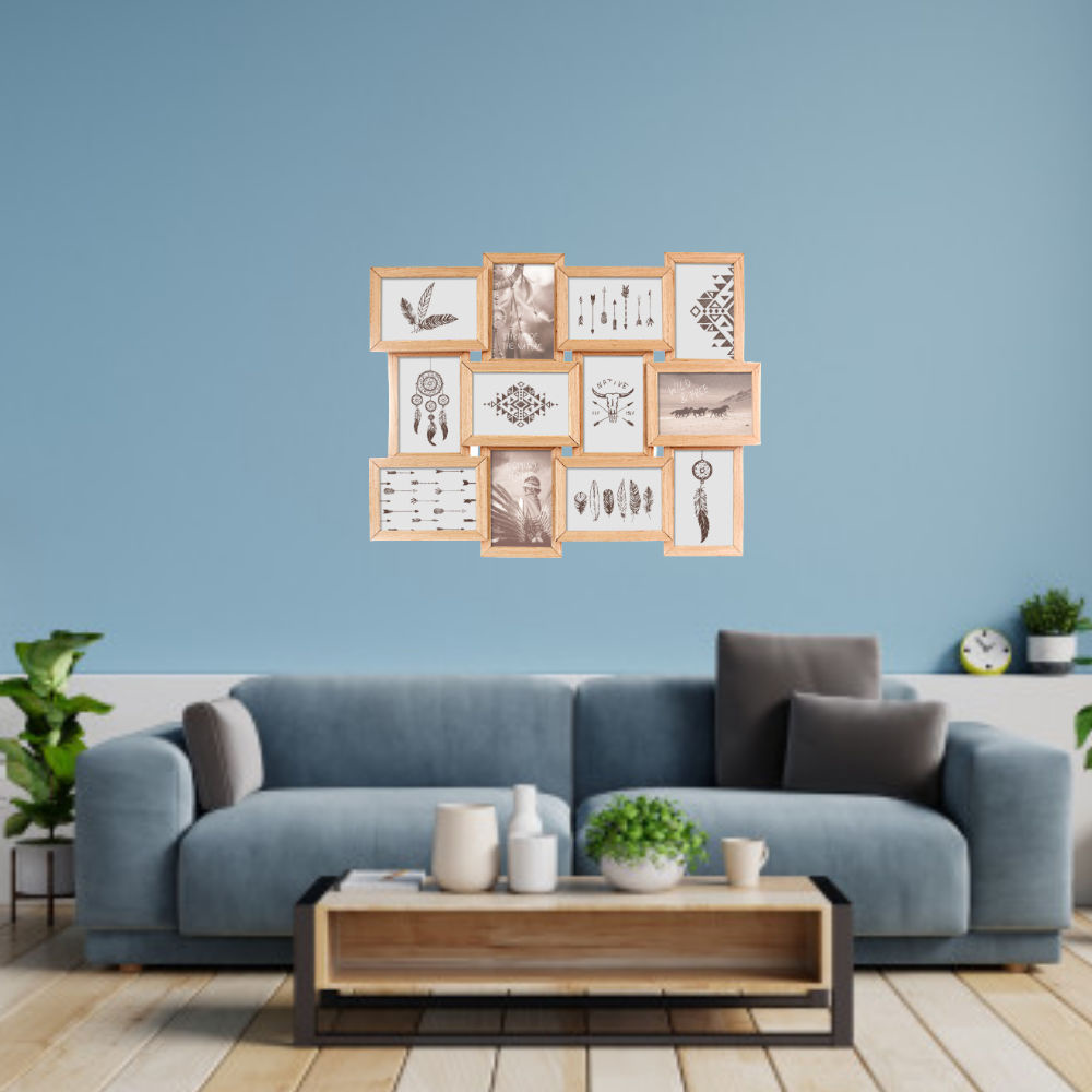 Alle foto‘s van die geweldige momenten welke je met je familie, vrienden of op vakantie hebt meegemaakt slingeren nu nog vaak rond in je la of op de harde schijf van je computer of telefoon? Deel met deze grote fotolijst deze prachtige foto's met de nieuwsgierige kijkers! Creëer zelf een persoonlijke fotocollage met behulp van deze uiterst decoratieve fotolijst. Hij biedt ruimte voor in totaal 12 foto‘s. Dankzij de ophang haken aan de achterkant kan je zelf bepalen of hij verticaal of horizontaal wordt opgehangen.