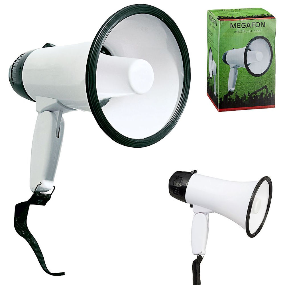 Megafoon voor bij Sport evenementen, werkt op 4x LR14 Batterijen (niet ingebrepen) Ondanks zijn formaat beschikt de megafoon over een vermogen van 10W waarmee hij een perfect bereik heeft.