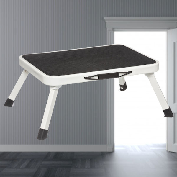 Dit metalen opvouwbare opstapje is zeer geschikt om te gebruiken als opstap of keukentrapje voor bijvoorbeeld in de keuken of bijkeuken. Het opstapje is eenvoudig uit te klappen en weer op te klappen na gebruik, zodat je deze weer ruimtebesparend kunt opbergen.