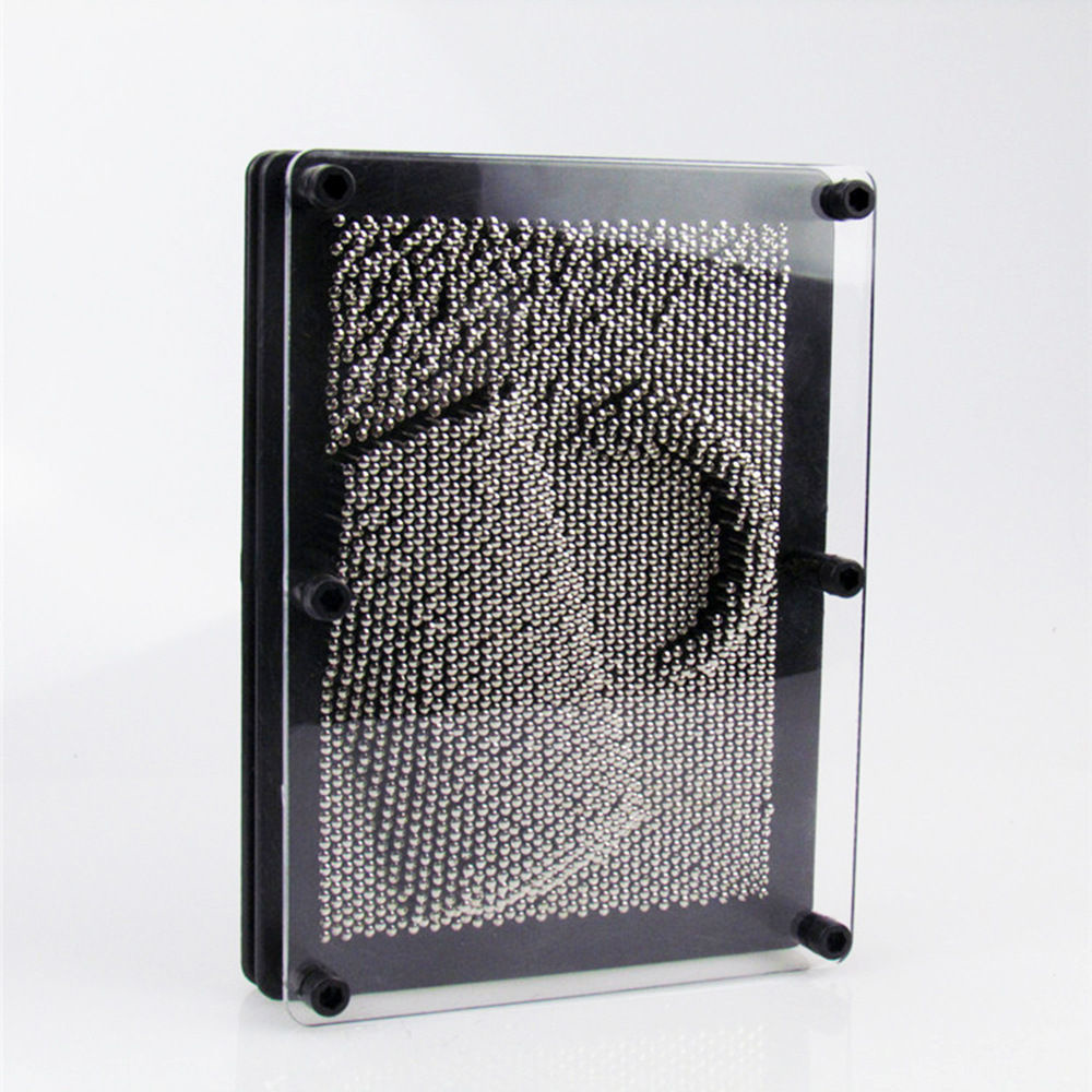 Laat je creatieve kant zien met Pin Art ! Vereeuwig je handen, je gezicht of andere voorwerpen in indrukwekkende sculpturen gemaakt van metalen pinnen. Met het 3D spijkerspel maak je binnen enkele seconden prachtige driedimensionale beelden. Hiervoor hoef je enkel het lichaamsdeel of een voorwerp van achteren tegen de spijkers te drukken, waarna je het prachtige kunstwerk kunt bewonderen. Laat het spijkerspel rechtop staan en maak indruk met de individuele decoratie in het woonkamer.