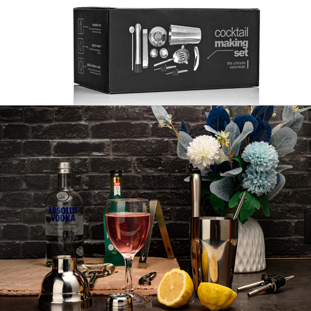 Met deze Professionele 10 Delige complete cocktailset, creëer je vanaf nu jouw eigen zelfgemaakte overheerlijke cocktails en mix drankjes. Perfect dus! Om al jouw gasten en jezelf te verrassen met jouw zelfgemaakte cocktails. Deze complete cocktail shaker set is niet alleen voor beginners maar ook voor de ervaren barmannen en vrouwen. Een zeer leuke bar accessoire voor bij jou thuis.