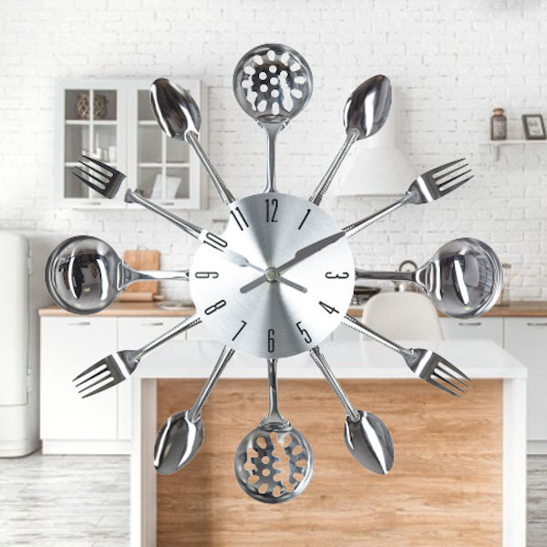 Wat deze bestek wandklok heel bijzonder maakt, is het prachtige design van de bestek wandklok. Omdat deze is uitgevoerd met mooi keuken bestek, zoals lepels, vorken etc.