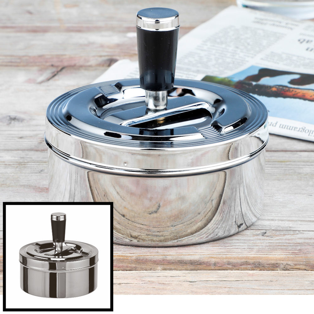 Decopatent Decopatent® Ronde Druk Tafel Asbak - Druk draai Asbak Voor Binnen - Rond Ø 11cm - Draaiasbak - Tafelasbak Metaal - 11 x 11 x 10 Cm.