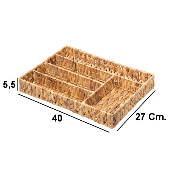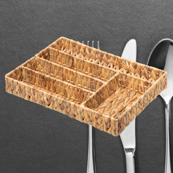 Pluspunten van deze Decopatent 5 Vaks Bestekbak / Bestekcassette, van gevlochten rotan