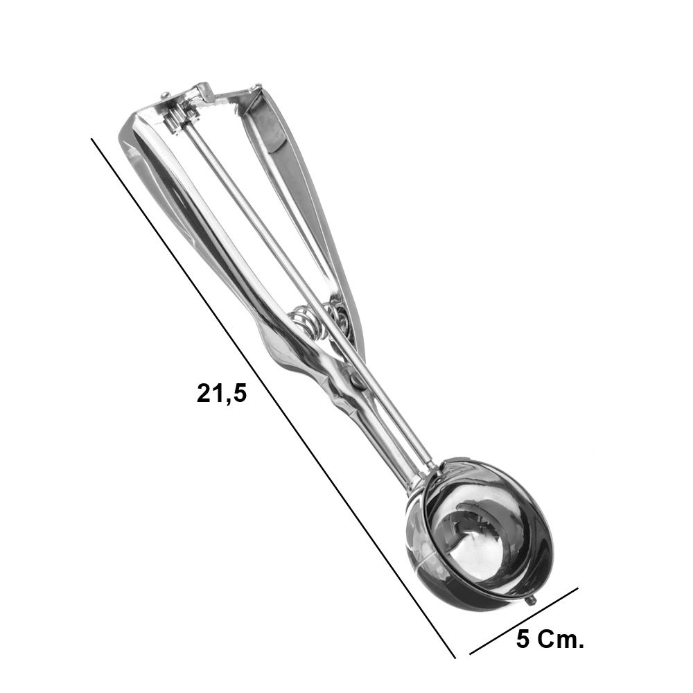 ✅ Professionele ijsschep gemaakt van roestvast staal. De schep heeft een diameter van maar liefst 5cm om mooie ronde professionele bollen ijs te scheppen. Door de schep in te knijpen wordt de bol uit de schep gedrukt.