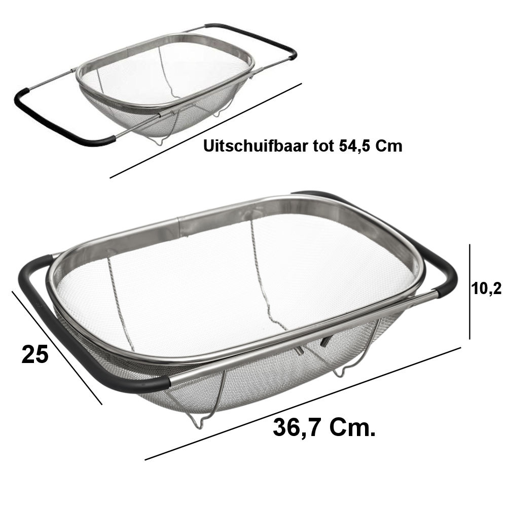 ✅ RVS keuken Vergiet / Zeef ✅ Uitschuifbaar van 36,7 naar 54,5 Cm. ✅ Keuken Vergiet Zeef ✅ Voor het wassen / afspoelen van Groenten, Fruit, Aardappels, Pasta etc. ✅ Gootsteen Zeef, Uitschuifbaar