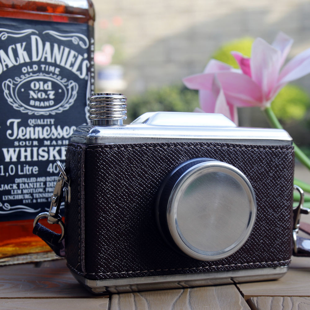 Voordelen van deze Decopatent Rvs Platvink Alcohol Fles in Fotocamera vorm