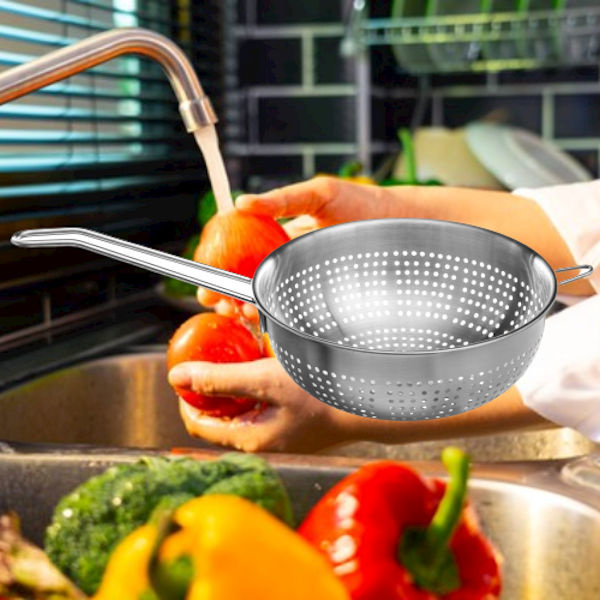 Een zeer handige keuken vergiet. Het vergiet is gemaakt van Rvs metaal is tevens voorzien van een 1 lang handvat. Zodat dit vergiet comfortabel in je handen ligt.