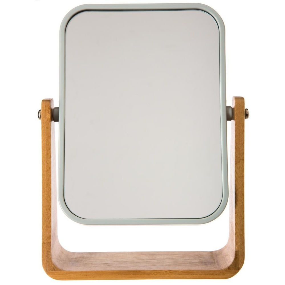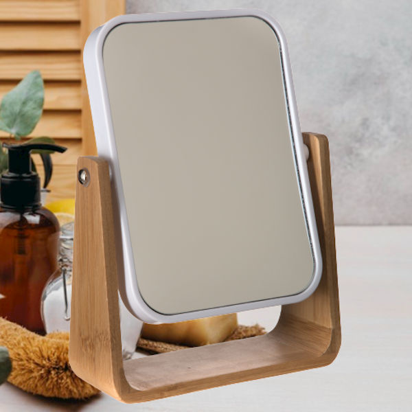 Deze Bamboe spiegel heeft aan 1 kant een gewone normale glazen spiegel en aan de andere kant een x3 vergrootspiegel.
