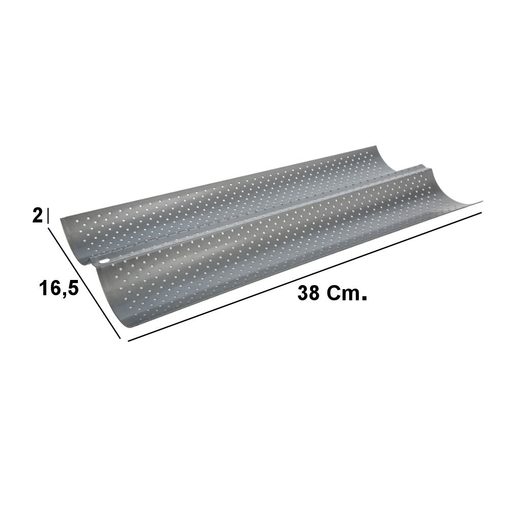 ✅ Stokbroodvorm ✅ Bakvorm voor Stokbrood met 2 rijen ✅ Baguette bakvorm voor 2 Stokbroden ✅ Afm: 38 x 16.5 x 2 Cm