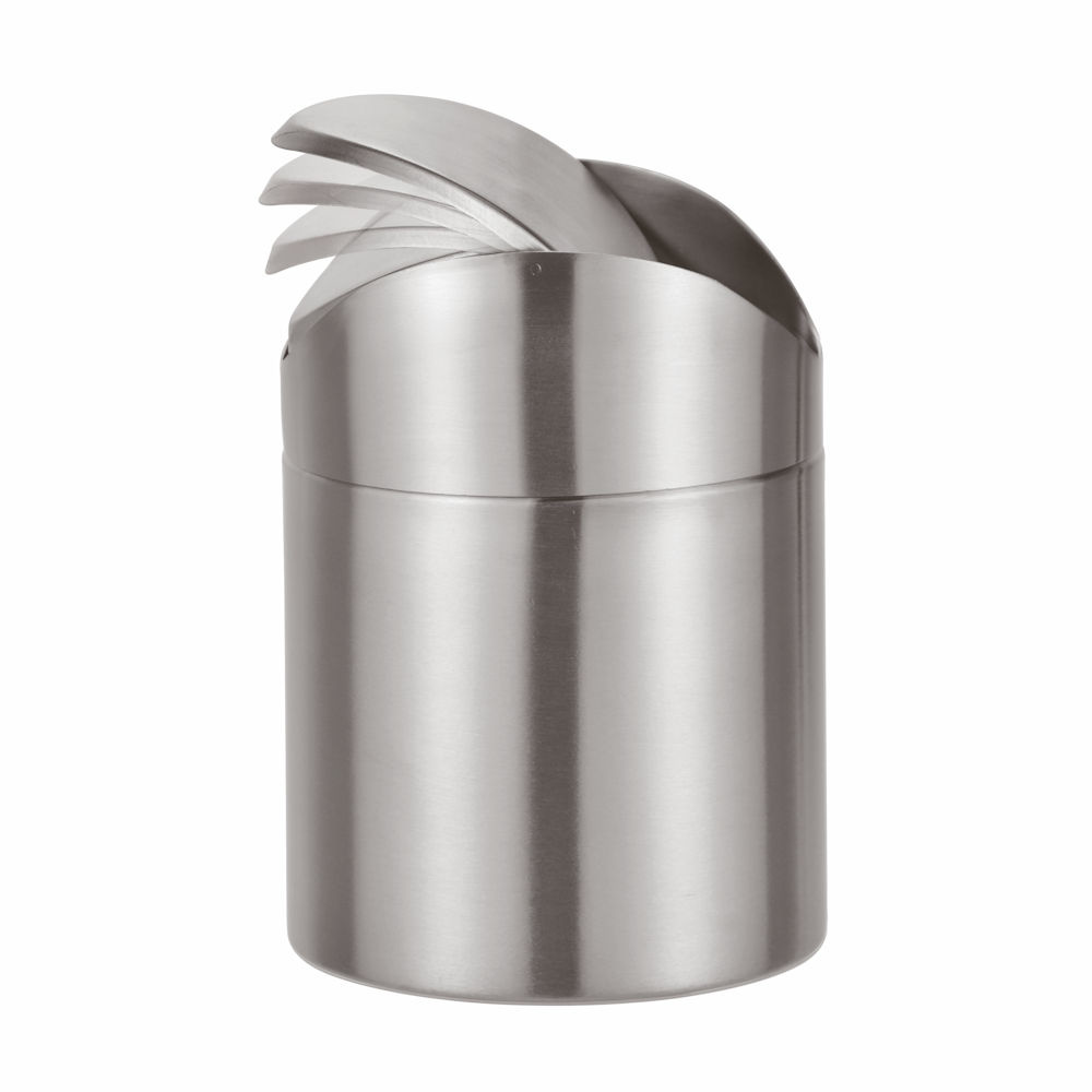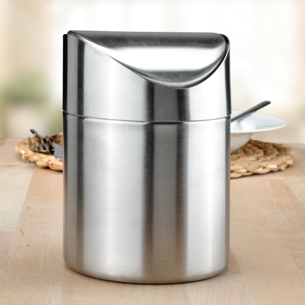 Dit tafelafvalbakje is gemaakt van RVS metaal en is zeer stevig en praktisch. Het afvalbakje kan gebruikt worden op verschillende plekken in huis, zoals op het bureau, de eettafel of op het keukenblad.