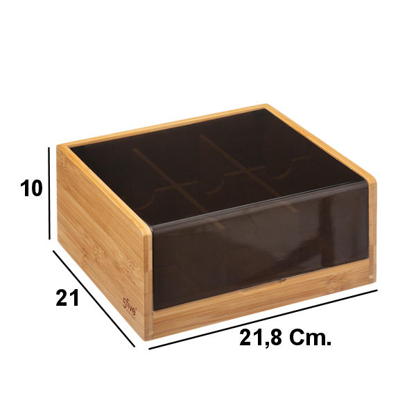 Je Thee berg je vanaf nu makkelijk en overzichtelijk op in deze stijlvolle design theedoos. Onder het venster zie je 6 handige opbergvakjes waarin je verschillende theezakjes kwijt kan.